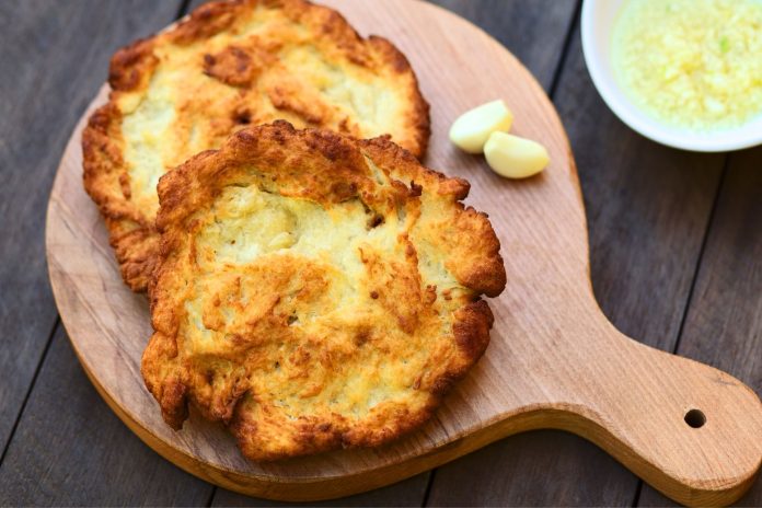 A víz és olaj keverékéhez reszeld bele a fokhagymát, és ezzel kend meg a kész lángosokat.